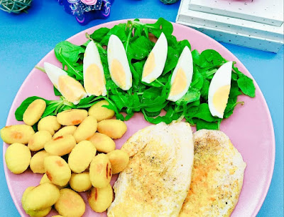 Y algo de hidrato: una rebanada de pan de molde saludable con ello, o 100 gramos de patatas especiadas, o 40 gramos de arroz basmati integral bio (pesados en seco).