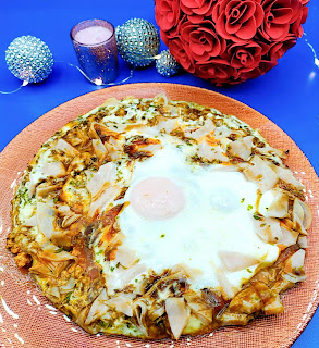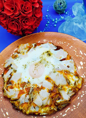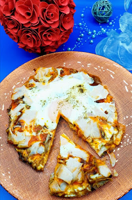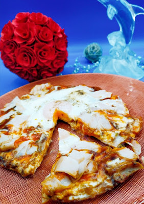–  La base es de claras de huevo, hasta que cubra el fondo de la sartén y como medio centímetro más de alto.